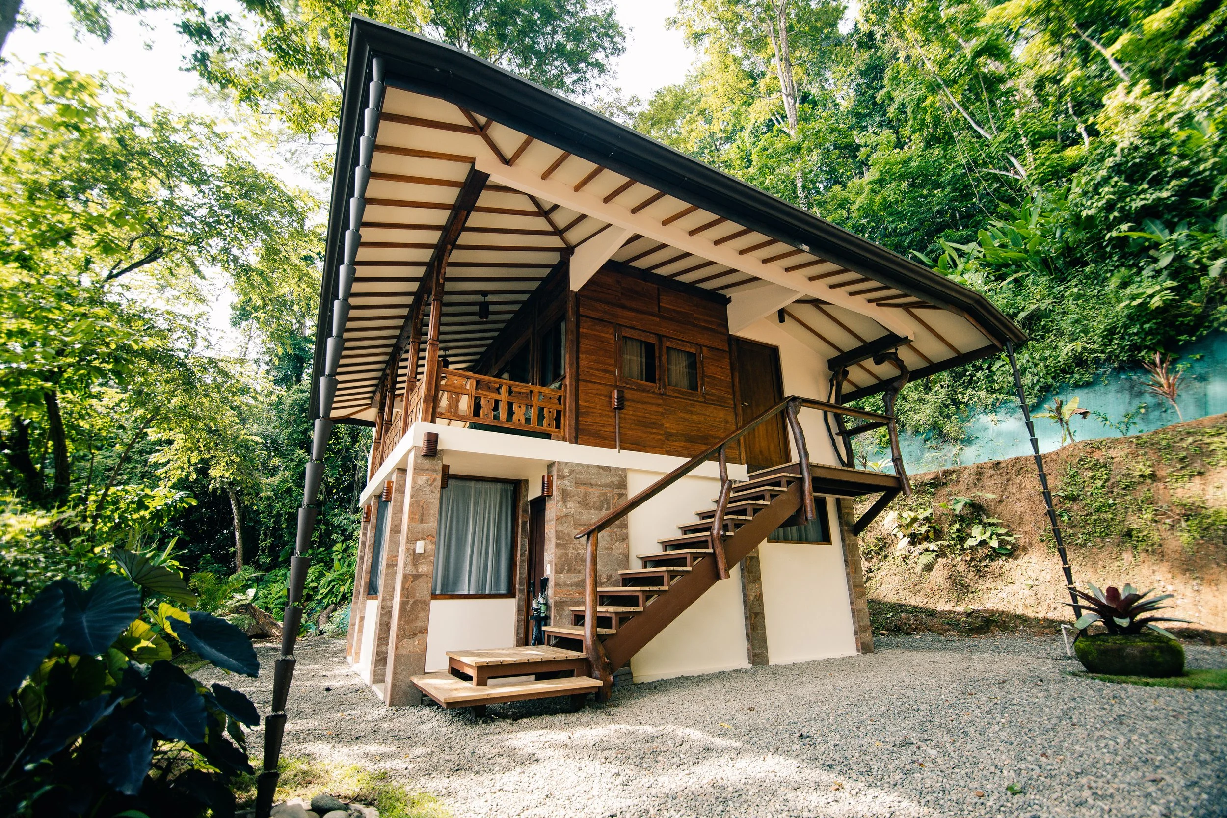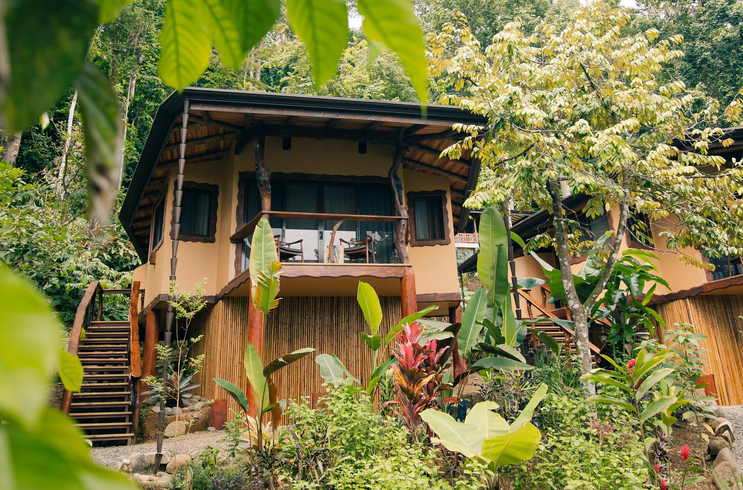 Two separate Cabinas offer an intimate getaway space surrounded by jungle canopy and permaculture gardens. Their design is inspired by the region's traditional architecture, including hand-carved details and locally sourced materials.